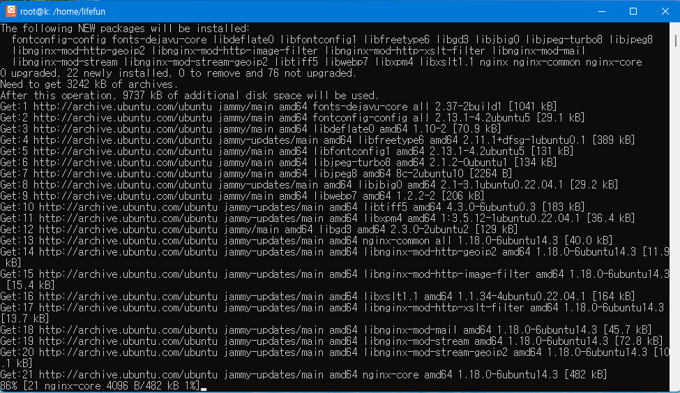 아래 명령어를 통하여 nginx를 설치합니다.