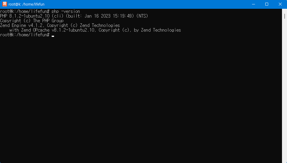 설치가 잘 되었는지 php 버전 체크 명령어로 확인해 봅니다.
