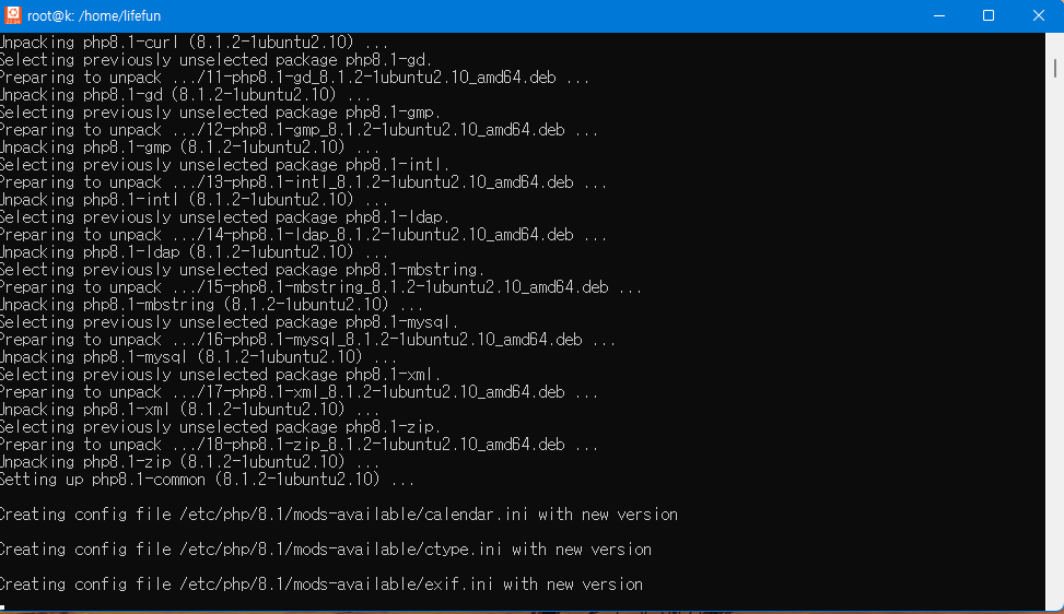 아래 명령어 코드는 php를 설치하고 아울러 자주 사용되는 라이브러리를 추가합니다.