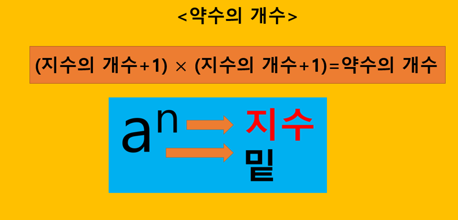 약수의 개수에서 중요한 건 밑 위에 있는 지수 입니다.