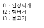 $food = array( "f1" => "된장찌개" , "f2" => "햄버거" , "f3" => "불고기" );