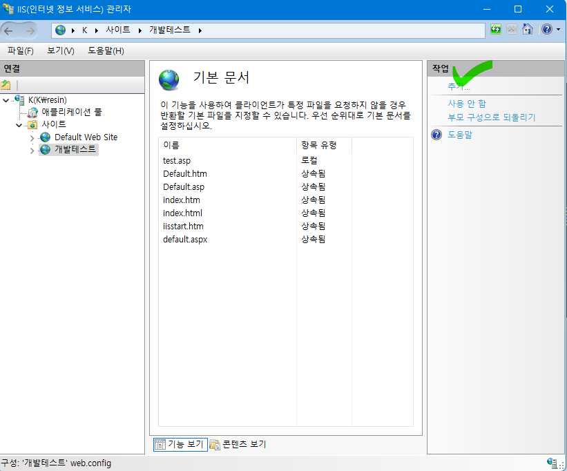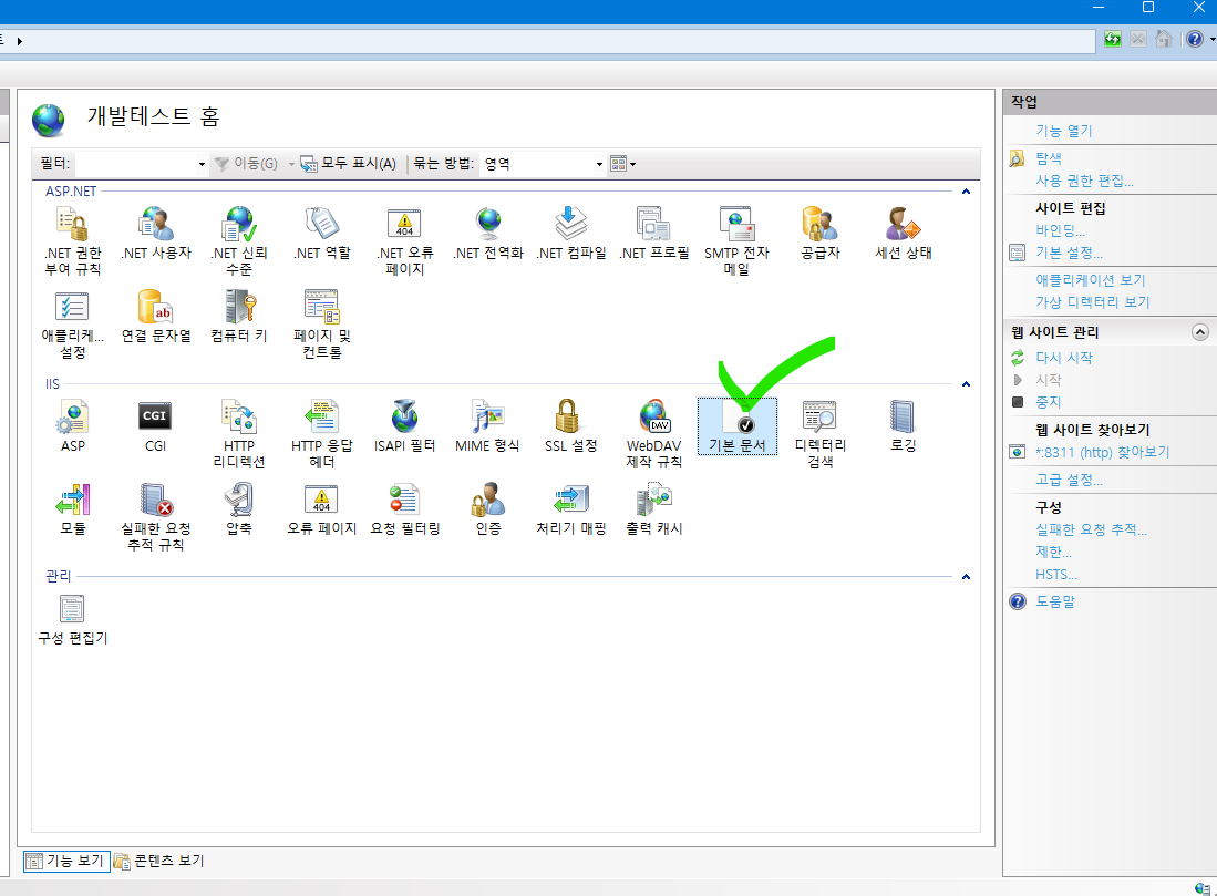 2. 설정할 웹 사이트를 선택 후 [기본 문서]아이콘을 클릭합니다.