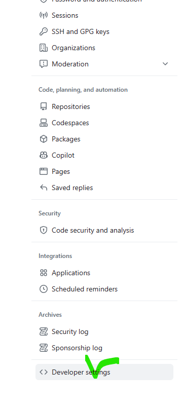 2. Settings 화면에서 좌측 메뉴에 [Developer settings] 메뉴가 있습니다. 클릭합니다.