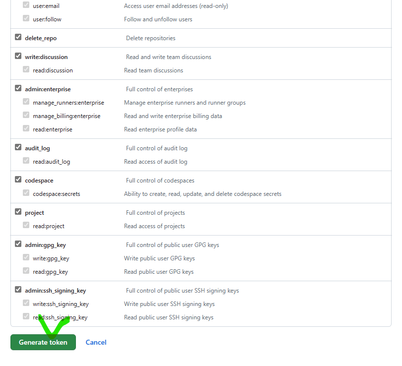 6. 설정이 완료가 되었으면 [Generate token] 버튼을 클릭합니다.