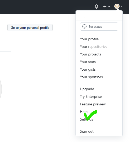 1. 오른쪽 상단에 프로필 아이콘을 클릭 하시면 아래 그림과 같이 [Settings] 메뉴가 보이실겁니다. 해당 메뉴를 클릭합니다.