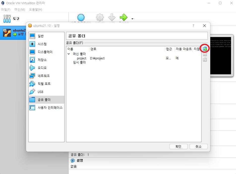 설정 > 공유폴더 > + 버튼 클릭
