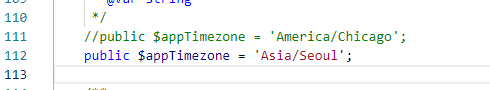 $appTimezone = 'America/Chicago';를 주석처리하고